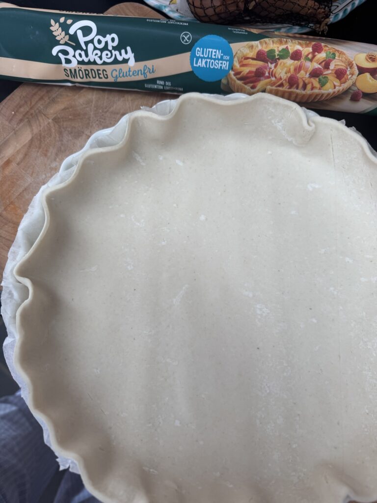 Bunden blev lækker ‘croissant’ agtig og smagte godt, og ikke mindst var den super nem at arbejde med ift. de de glutenfrie præfabrikerede bunde vi kender fra danske supermarkeder. Dem har jeg tit smidt ud igen fordi de knækkede og var usammenhængende.